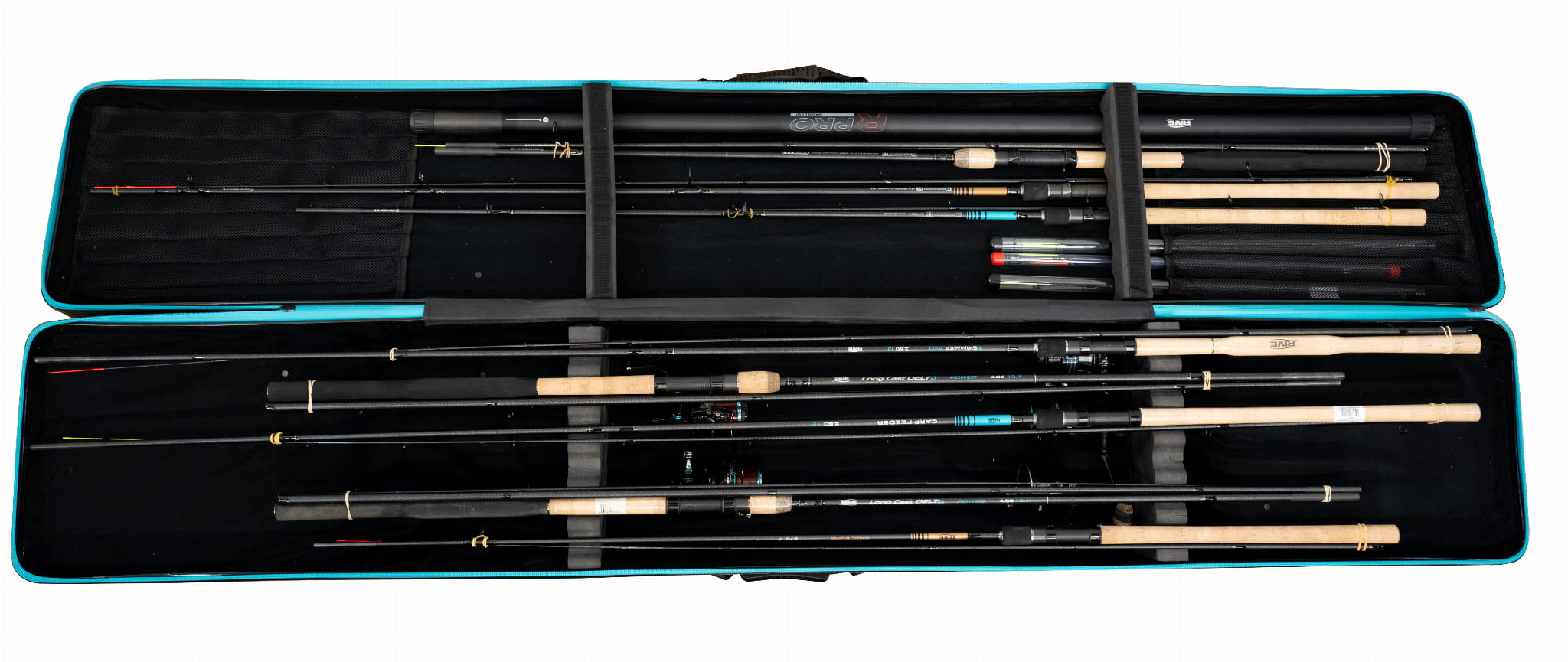 ✅ System stabilizacji – innowacyjny system pianek EVA zapobiega przemieszczaniu się wędzisk i kołowrotków, gwarantując ich bezpieczeństwo w transporcie.